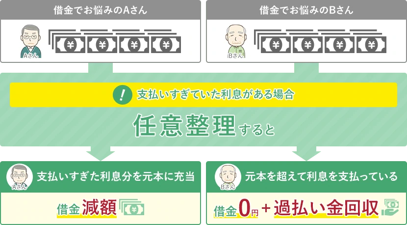 その場合、支払いすぎた利息分を元本に充当し、借金を減額することができます。なかには、元本を超えて支払いすぎているケースもあります(過払い金)。