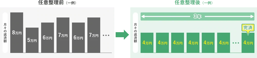 任意整理の和解後は、原則3年(最長5年)の分割払いで返済していきます。